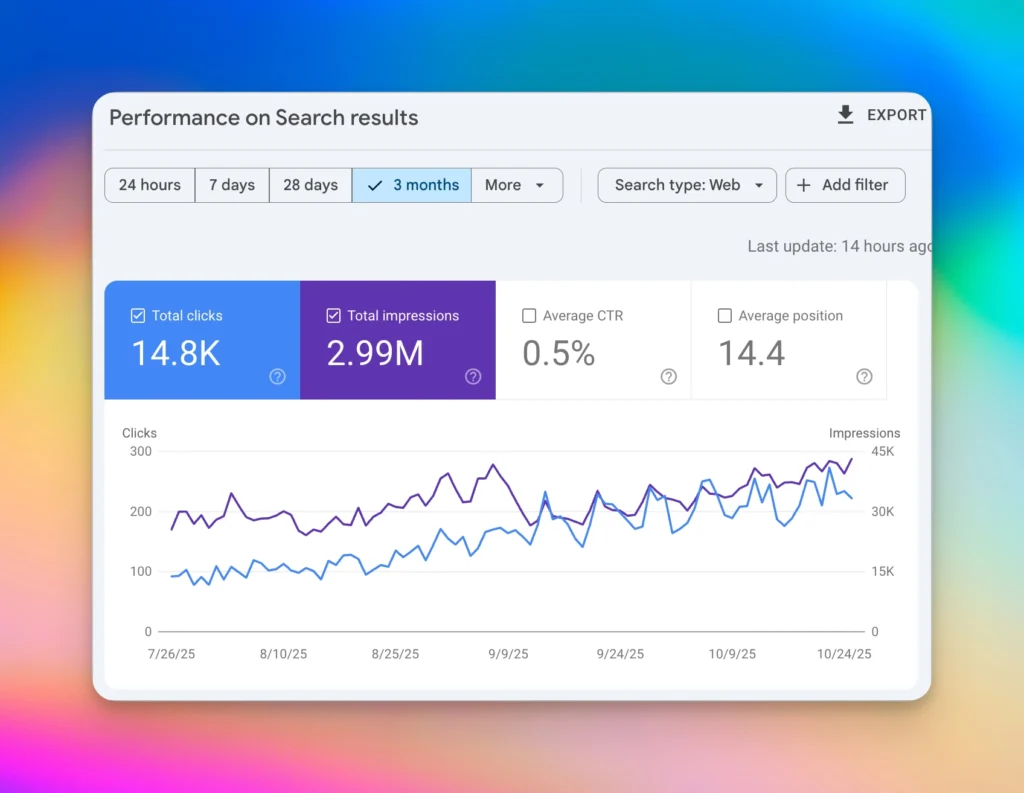 Simplified on-site content and internal links, driving 3M impressions and ranking improvements across core pages.
